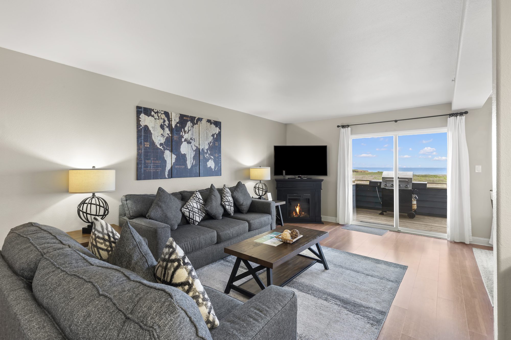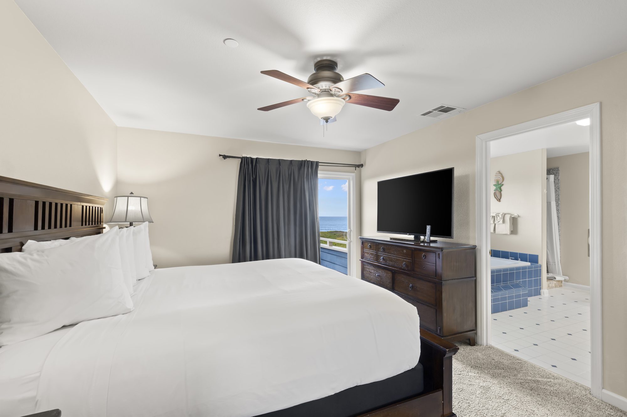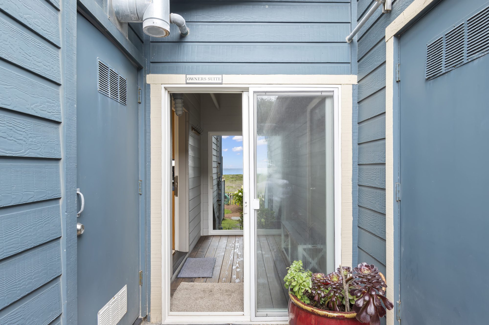 Experience unparalleled coastal luxury in the Owner’s Suite with Ocean View at Surf & Sand Lodge, where breathtaking vistas of the Pacific Ocean meet exquisite comfort and sophistication. This meticulously designed suite features two bedrooms, a luxurious king-size and queen-size beds adorned with sumptuous linens, floor-to-ceiling windows offering panoramic ocean views, and a separate living area with a cozy fireplace for ultimate relaxation. Modern amenities include complimentary Wi-Fi, a flat-screen TV, and full kitchen, ocean view deck with BBQ and a private yard to ensure convenience, while the upstairs private balcony provides the perfect setting to savor morning coffee or evening wine against the backdrop of the Pacific sunset. With easy access to outdoor activities and nearby attractions, the Owner’s Suite promises an unforgettable coastal retreat in Northern California’s stunning landscape. Book your stay today and immerse yourself in the beauty and tranquility of the coast at Surf & Sand Lodge.